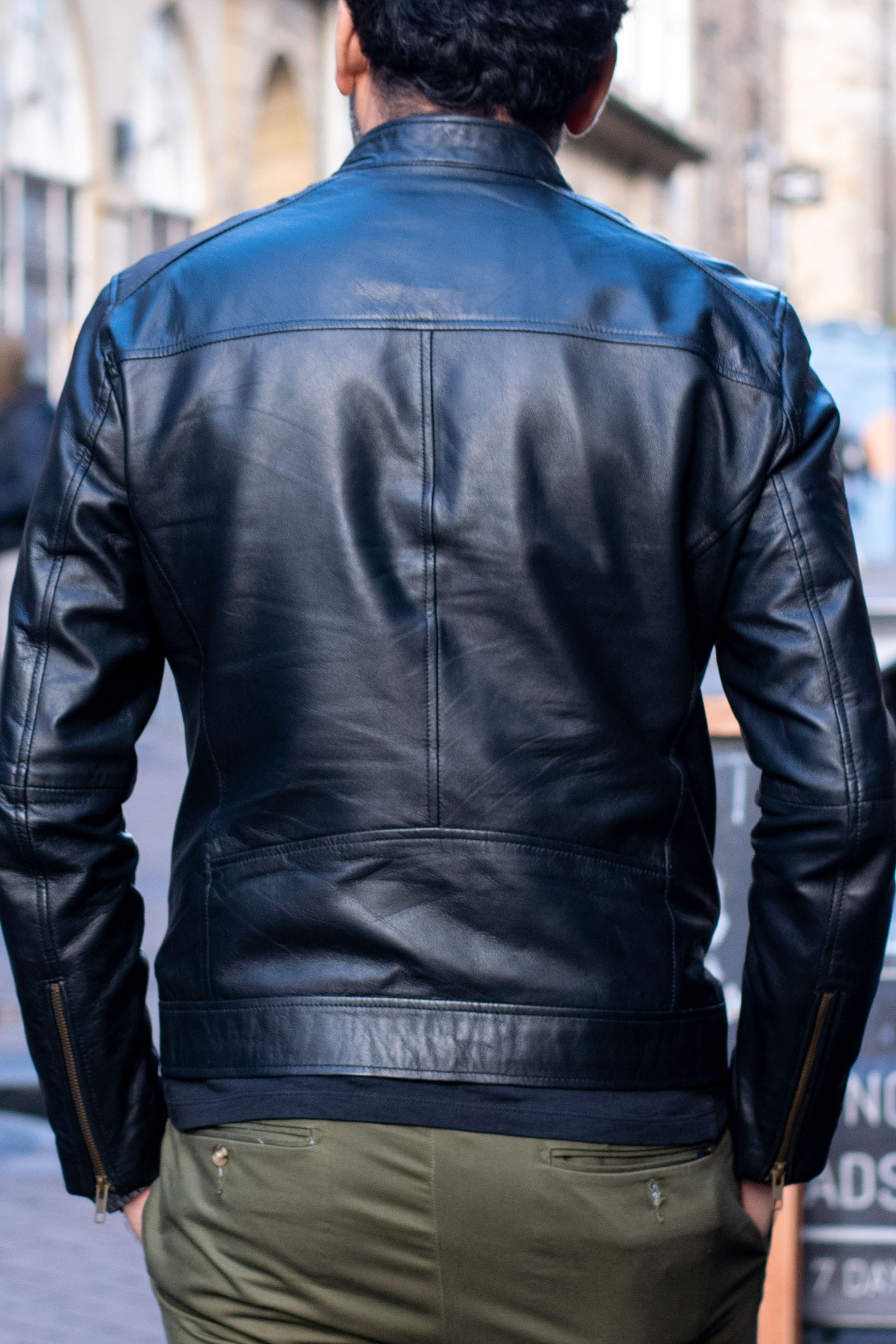 - Made from genuine, supple lamb leather, this jacket offers unparalleled comfort and durability. The natural grain of the leather adds depth and character, making each piece unique.